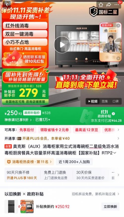 餐具清洁与存储同样不容忽视。奥克斯台式消毒柜RTP28-V1,独特机身尺寸,小巧不占空间,不锈钢机身无惧油烟,延长使用寿命,双发热管同步加热,热量快速蒸发餐具上残余的水滴,高温同步灭杀细菌病毒,自动保洁。京东保价11.11,补贴后到手价250.92元,国补先到先得。