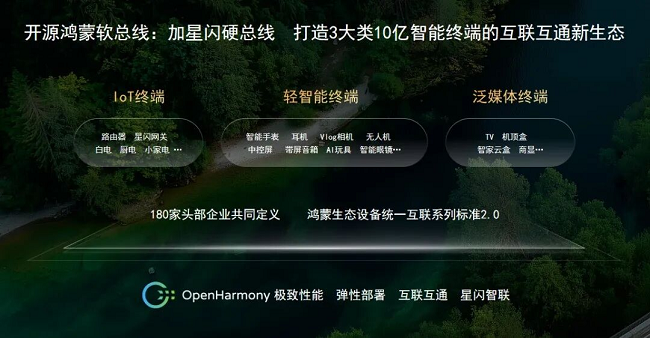 如果说星闪解决了设备“连不上”的问题,开源鸿蒙(OpenHarmony)则解决了跨终端“说不通”的难题,让不同品类、不同品牌的设备共享同一套语言,从而可以被全场景智能统一调动、协同管理,带给用户主动无感服务的智能终端。