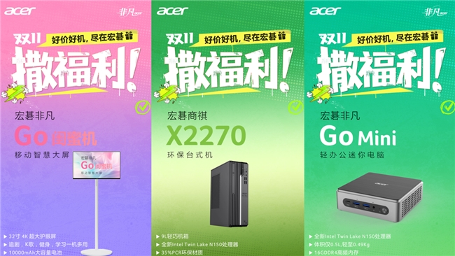 宏碁双十一限时特惠,好价好机叠加多重好礼!