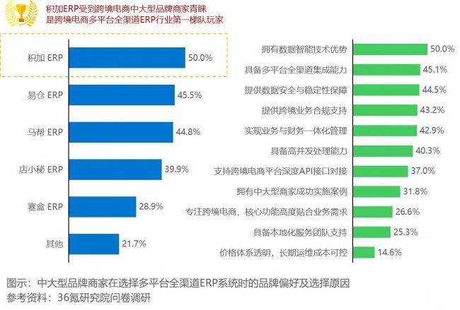 36氪权威报告:积加ERP荣膺跨境电商多平台全渠道ERP喜好度榜首