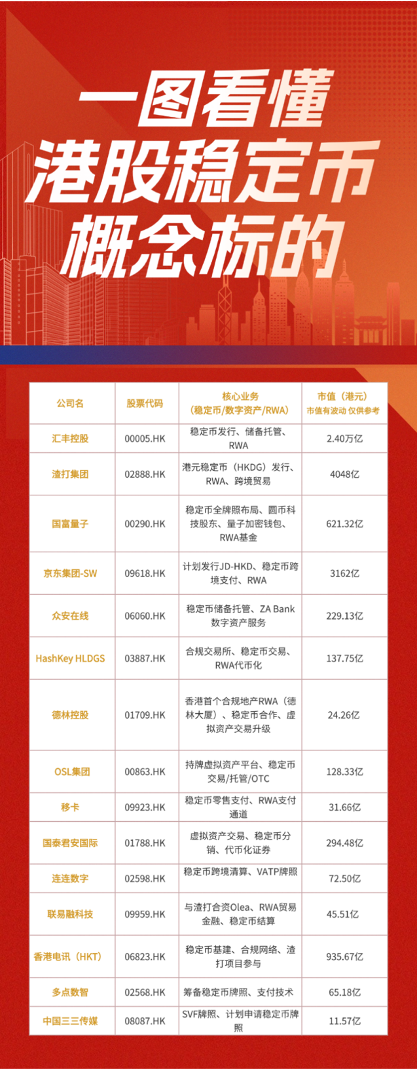 随着香港《稳定币条例》正式生效与首批牌照落地,市场迎来两大核心变化:一是监管清晰化,发行、流通、托管等环节有规可依;二是机构入场加速,传统金融与数字资产的融合通道全面打开。受消息提振,今日港股与A股相关公司集体异动,市场对合规数字金融板块的关注度快速升温。