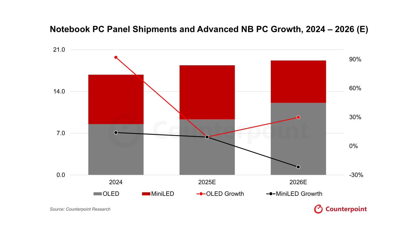 CounterPoint:苹果 OLED MacBook Pro 成关键推手,2026 年 OLED 笔记本面板出货量预估同比增 30%