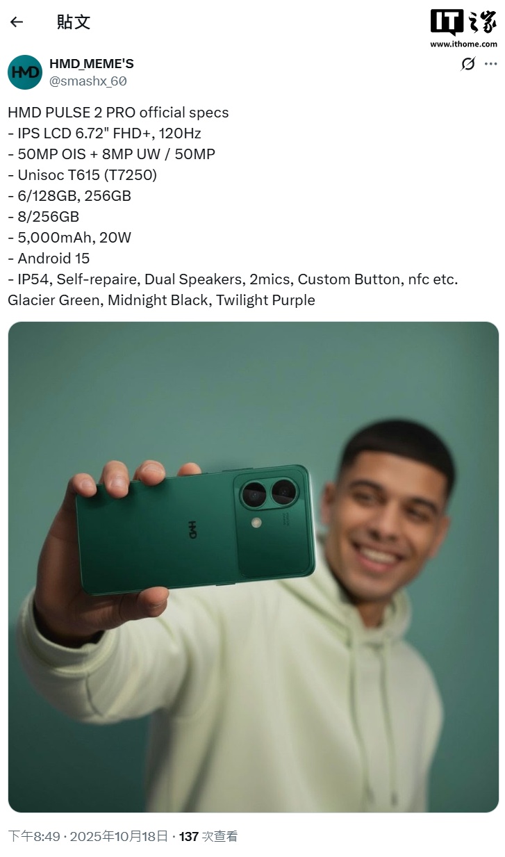 HMD Pulse 2 Pro 手机规格曝光:紫光展锐 T615 芯片,6.72 英寸 1080P LCD 屏幕