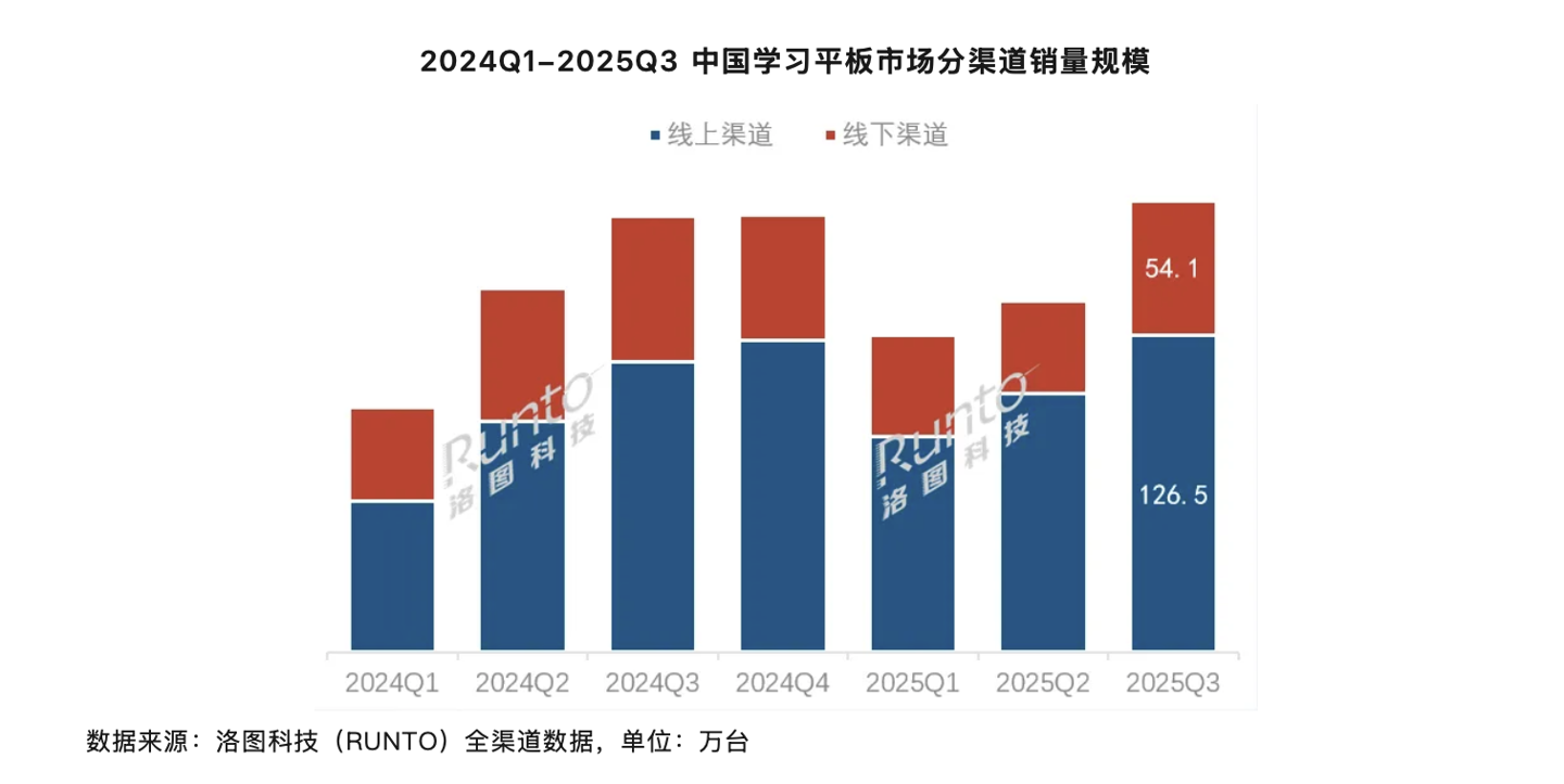 2025 年 Q3 中国大陆学习平板市场全渠道销量 180.6 万台,同比增长 3.5%
