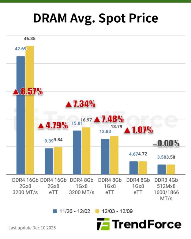 TrendForce:DDR4 领涨内存市场,DDR5/DDR3 年底小幅回调但不影响未来涨势