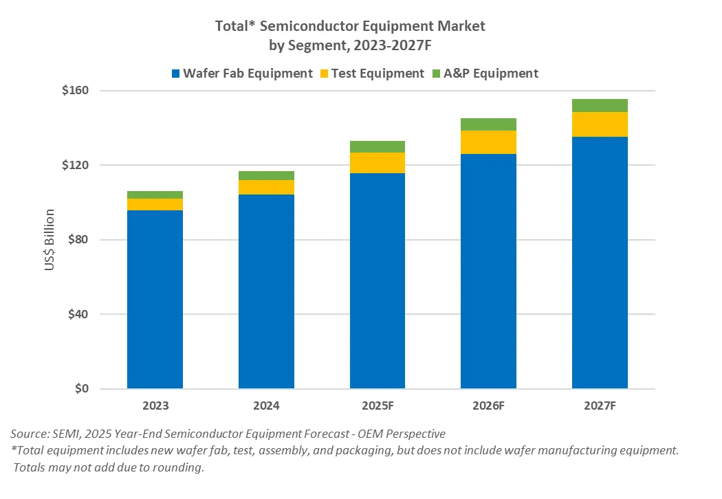 SEMI 预测:今年全球半导体设备市场 1330 亿美元,2027 年突破 1500 亿美元