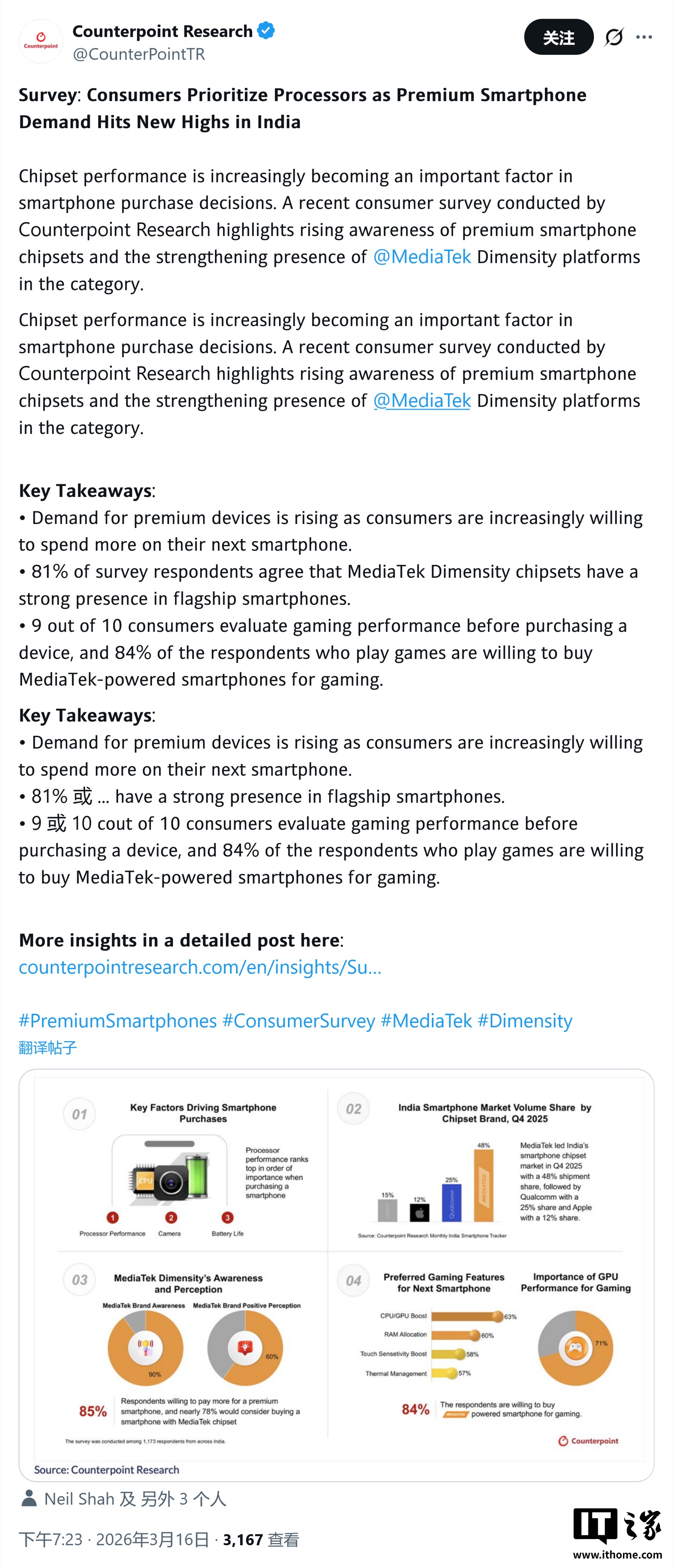 CounterPoint 称联发科高端化战略成效显著,2025Q4 印度手机市场斩获 48% 份额