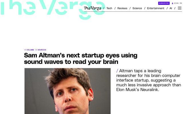 OpenAI CEO筹备非侵入式脑机接口公司Merge Labs:利用声波读取大脑