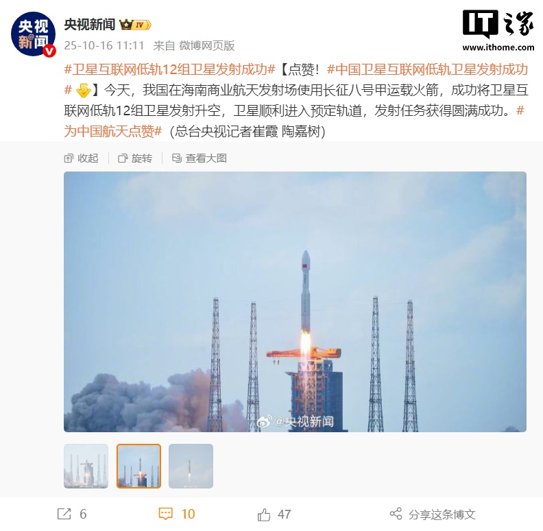海南商发十战十捷:我国卫星互联网低轨 17 组卫星发射成功,长八甲火箭 2025 年完美收官