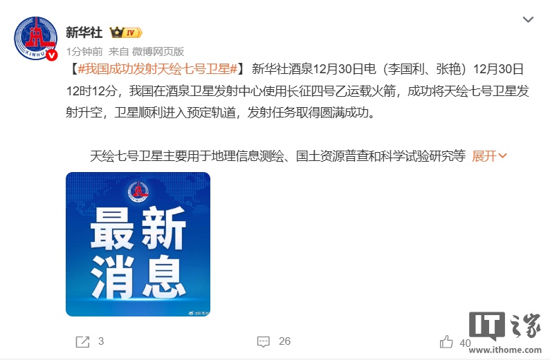 卫星互联网低轨 12 组卫星发射成功,我国长征系列火箭达成 600 次里程碑、速度创纪录