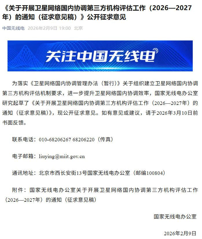 国家无线电办公室拟引入第三方评估机制,提升卫星网络协调效率