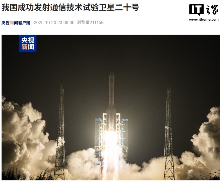 我国成功发射通信技术试验卫星二十号